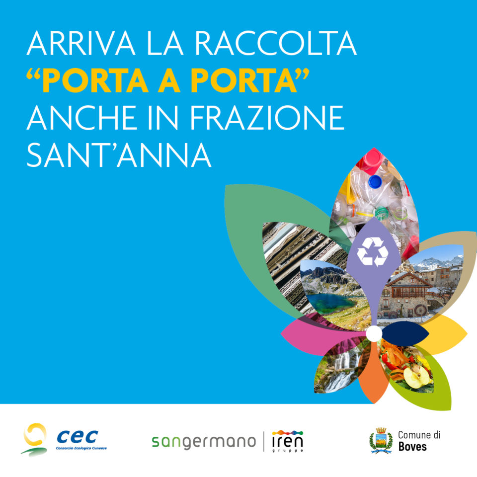 Anche per le famiglie di Frazione Sant’Anna di Boves arriva il porta a porta! Dal 29 Luglio:
