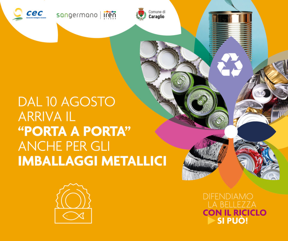 Da MERCOLEDI’ 24 LUGLIO si possono ritirare i nuovi sacchetti azzurri per la raccolta porta a porta degli imballaggi metallici che parte dal 10 agosto!